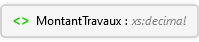 <xs:element name="MontantTravaux" type="xs:decimal" xmlns:xs="http://www.w3.org/2001/XMLSchema"> <xs:annotation> <xs:appinfo /> <xs:documentation xml:lang="fr-FR">Montant des travaux.</xs:documentation> </xs:annotation> </xs:element>