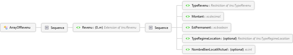 NombreBienLocatifActuel Élément TypeRegimeLocation Élément EstPermanent Élément Montant Élément TypeRevenu Élément Sequence Revenu Élément Sequence ArrayOfRevenu Complex Type