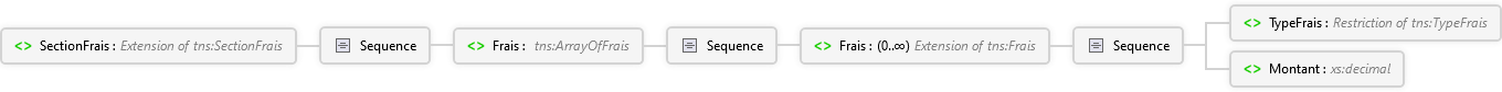 <xs:elementname="SectionFrais"nillable="true"type="tns:SectionFrais"xmlns:xs="http://www.w3.org/2001/XMLSchema"><xs:annotation><xs:appinfo/><xs:documentationxml:lang="fr-FR">Informations liées aux frais.</xs:documentation></xs:annotation></xs:element>
