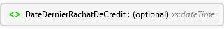 <xs:elementminOccurs="0"name="DateDernierRachatDeCredit"nillable="true"type="xs:dateTime"xmlns:xs="http://www.w3.org/2001/XMLSchema"><xs:annotation><xs:appinfo/><xs:documentationxml:lang="fr-FR">Date de dernier rachat de prêt.</xs:documentation></xs:annotation></xs:element>