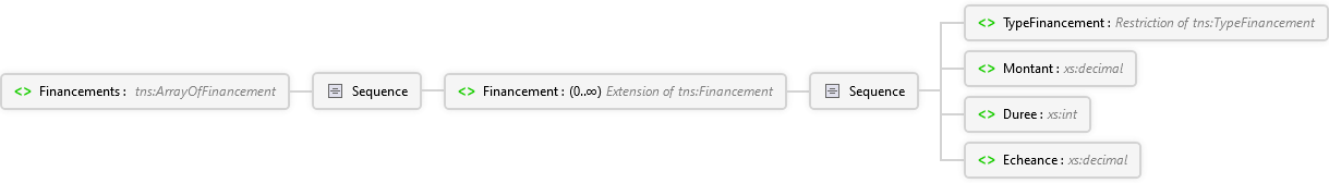 Echeance Élément Duree Élément Montant Élément TypeFinancement Élément Sequence Financement Élément Sequence Financements Élément