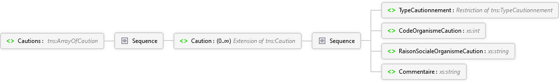 <xs:element name="Cautions" nillable="true" type="tns:ArrayOfCaution" xmlns:xs="http://www.w3.org/2001/XMLSchema"> <xs:annotation> <xs:appinfo /> <xs:documentation xml:lang="fr-FR">Liste des cautions.</xs:documentation> </xs:annotation> </xs:element>
